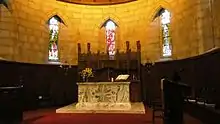 A later church was built at the current site in 1805.[1] Queen Victoria worshipped there from 1848, and every British monarch since has worshipped at Crathie Kirk. Victoria laid the foundation stone for a new, much larger, church in 1893. Victoria's decision to worship at Crathie Kirk initially caused a scandal, particularly when it was discovered that she had received communion there. As Supreme Governor of the Anglican Church of England, it was expected that she would worship in the Scottish Episcopal Church, which recognised the authority of the archbishop of Canterbury, although to do so would have been illegal since in her own words "Scotch bishops are mere dissenters".