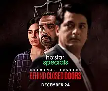 Criminal Justice: Behind Closed Doors is an Indian Hindi-language legal drama web series for Hotstar Specials written by Apurva Asrani and directed by Rohan Sippy and Arjun Mukerjee. The series stars Pankaj Tripathi, Kirti Kulhari, Jisshu Sengupta and Khushboo Atre, and was released through Disney+ Hotstar on 24 December 2020.[1]