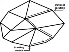 - ↑ More generally, for the simplex algorithm, the expected number of steps is proportional to D for linear-programming problems that are randomly drawn from the Euclidean unit sphere, as proved by Borgwardt and by Smale.