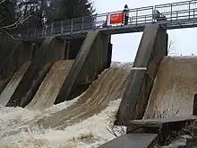![]() Crooks Hollow Dam with all 4 spillways in action on March 14, 2010. On this day, HCA's upstream measuring station at Christie Conservation Area recorded 67.5 mm of rain.[1] | |