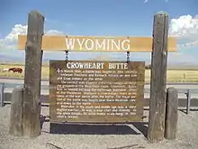 Crowheart is a census-designated place (CDP) in Fremont County, Wyoming, United States. The population was 141 at the 2010 census. Nearby Crowheart Butte was the site of a battle between the Crow and Shoshone American Indian tribes in 1866. According to legend, following a five-day battle for rights to the hunting grounds in the Wind River Range, Chief Washakie of the Shoshone and Chief Big Robber of the Crow agreed to a duel, with the winner gaining the rights to the Wind River hunting grounds. Chief Washakie eventually prevailed, but he was so impressed with the courage of his opponent, that rather than scalp him, he instead cut out his heart and placed it on the end of his lance.