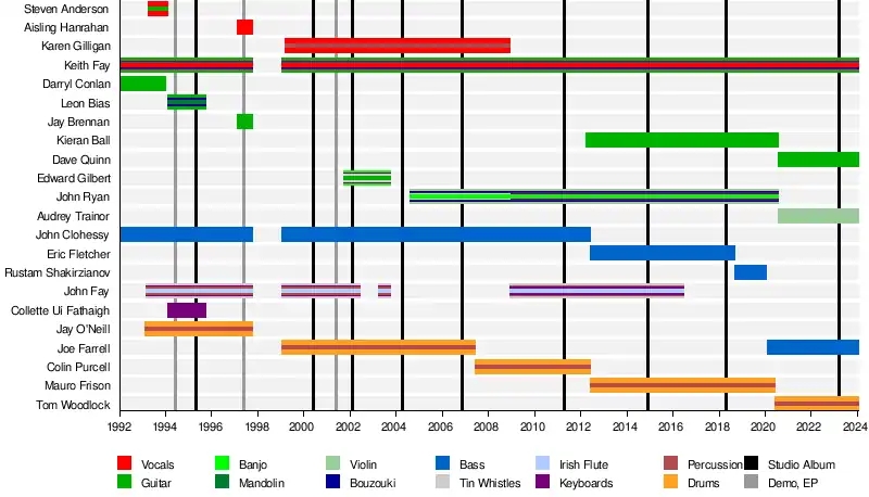 - John (O'Fathaigh) Fay – tin whistles, Irish flute, keyboards, percussion (1993–1997, 1999–2002, 2003, 2008–2016)