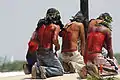 The Siete Palabras (Seven Last Words) play in Angeles, Pampanga, depicts the sufferings of Christ from his sentencing by Pontius Pilate to his death.[19] This takes the form of a colourful street play, with dozens of men carrying wooden crosses as heavy as 50 kg (110 pounds) and scores flagellating themselves in Barangay Lourdes Northwest, Angeles, between 14:00 and 15:00 PST (GMT+8).[20]