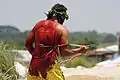 Crucifixion in the Philippines is a devotional practice held every Good Friday, and is part of the local observance of Holy Week. Devotees or penitents called magdarame in Kapampangan willingly have themselves crucified to reenact Jesus Christ's suffering and death, while related practices include carrying wooden crosses, crawling on rough pavement, and self-flagellation. Penitents consider these acts to be mortification of the flesh, and undertake these to ask forgiveness for sins, to fulfil a panatà (Filipino, "vow"), or to express gratitude for favours granted. In the most famous case, Ruben Enaje drives four-inch nails into both hands and feet and then he is lifted on a wooden cross for around five minutes.[1]