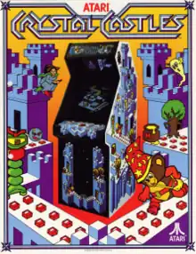 Crystal Castles is an arcade game released by Atari, Inc. in 1983.[2] The player controls Bentley Bear who has to collect gems located throughout trimetric-projected rendered castles while avoiding enemies, some of whom are after the gems as well. Crystal Castles is one of the first arcade action games with an ending, instead of continuing indefinitely, looping, or ending in a kill screen,[3] and to contain advance warp zones.