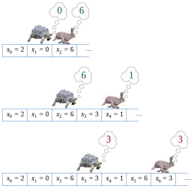 - ↑ Van Gelder, Allen (1987), "Efficient loop detection in Prolog using the tortoise-and-hare technique", Journal of Logic Programming, 4 (1): 23–31, doi:10.1016/0743-1066(87)90020-3.