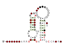 ![]() Consensus secondary structure and sequence conservation of Cyclic di-GMP-I riboswitch | |
