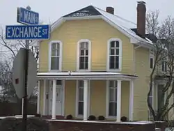 Daniel B. James, original owner of the home on Exchange Street, was born in Vermont in 1817. While in Vermont he practiced law. The 1860 U.S. Census says he came to Illinois via California in 1852. James helped found the Republican Party in Sycamore and in 1857 he co-founded the Sycamore True Republican, a newspaper. In 1865 he was elected county judge and stayed in office until 1869. James died in 1877 and is interred at the Elmwood Cemetery in Sycamore.[2]