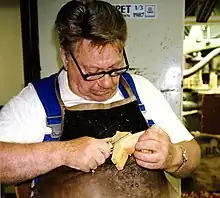 The Dalecarlian horse of today is still a handcrafted article, made of pine, and its pattern is about 150 years old. At least nine different people contribute their skills to create each horse. The distinctive shape of the horse is due to the usage of flat-plane style carving.