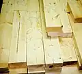 The wood from which the figures are carved comes from the slow-growing pine forests around Lake Siljan. The wood is ideal for carpentry and carving. The trees to be made into horses are marked out while still standing in the forest. Only the best timber will be selected for carving into horses. The trees are felled and sawed into pieces of a suitable size for the blanks that will eventually be made into Dalecarlian horses.