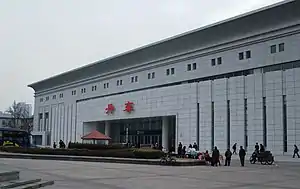 Dandong railway station (Chinese: 丹东站; pinyin: Dāndōng zhàn) is a railway station located in Zhenxing District, Dandong, Liaoning, China. It is the terminus of the Shenyang–Dandong railway, the Dandong–Dalian intercity railway, and the Shenyang–Dandong intercity railway. It is also connected to the Pyongui Line which heads south to North Korea via the Sino-Korean Friendship Bridge.[1]