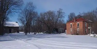 When it was nominated to the National Register in 1979, the farmstead consisted of seven standing buildings, a building ruin, and the sites of four former buildings or structures.[3] As of 2016, several of the supporting buildings have been demolished.[4] As originally listed as a historic district, the 8.9-acre (3.6 ha) property consisted of a farmhouse, barn, granary, brooding house, machine shed, outhouse, and corn crib, plus the ruins of a tool barn and the traces of a log cabin, water well, silo, and windmill.[3]