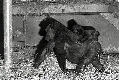 After writing the book Animals and Architecture in 1971, Hancocks was brought on to become the design coordinator for the Woodland Park Zoo in Seattle, Washington. Hancocks hoped to take into account the physiological and psychological needs of the animals by creating a replicated version of their own environments, taking into account natural foliage and geological forms, with special consideration taken to make the indoor spaces for the gorillas acoustically pleasant and with ample natural light, allowing them to sleep under the stars and moonlight. The strategies and techniques of placing both animals and zoo visitors in the same replicated naturalistic landscape became known as "landscape immersion." Hancocks hoped that this methodology would provide better and more interesting landscapes for the animals, and encourage visitors who were experiencing the same landscape to recognize, if only subconsciously, the vital links between wild animals and their habitats, anticipating they might then come to realize that the best way to help endangered animals is to preserve their wild habitats.[3] This first example of landscape immersion was opened in July 1979.[4]