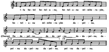 - ↑ "Dayeinu — Is It Ever Enough?". Haggadahs-R-Us. Archived from the original on September 23, 2020. Retrieved April 24, 2019.