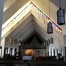 The Abbey Church was completed in the years during Second Vatican Council. It reflects the Liturgical Movement and the reforms of the council, as interpreted with the norms of Catholic tradition in mind. The Abbey Church is built in the basilica style, with a well appointed nave and a wide choir.
