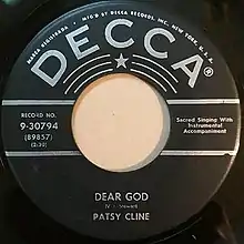- 1 2 Cline, Patsy (December 13, 1958). ""Dear God"/"He Will Do For You" (7" vinyl single)". Decca Records. 30794A.