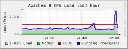 Jackson's death was first reported by the Los Angeles-based celebrity news website TMZ. Doctors at Ronald Reagan UCLA Medical Center pronounced Jackson dead at 2:26 p.m., and TMZ announced the death 18 minutes later.[23] The Los Angeles Times confirmed the report at 2:51 p.m. PDT (5:51 p.m. EDT).[92] The news spread quickly online, causing websites to slow down and crash from user overload. TMZ and the Los Angeles Times suffered outages.[93] Google initially believed that the millions of search requests meant their search engine was under DDoS attack, and blocked searches related to Michael Jackson for 30 minutes. Twitter reported a crash, as did Wikipedia at 3:15 p.m. PDT (22:15 UTC).[94] The Wikimedia Foundation reported nearly a million visitors to Jackson's biography within one hour, probably the most visitors in a one-hour period to any article in Wikipedia's history up to that point.[95] AOL Instant Messenger collapsed for 40 minutes.[96] Around 15 percent of Twitter posts (5,000 tweets per minute) mentioned Jackson after the news broke,[97][98] compared to the 5 percent recalled as having mentioned the Iranian elections or the flu pandemic that had made headlines earlier in the year.[98] Overall, web traffic ranged from 11 percent to at least 20 percent higher than normal.[97][99] MTV and BET aired marathons of Jackson's music videos.[100]