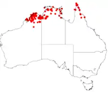 - ↑ Bryan A Barlow (1993). "Conspectus of the genera Amylotheca, Cyne, Decaisnina, Lampas, Lepeostegeres, and Loxanthera (Loranthaceae)". Blumea. 38 (1): 77, fig. 3 (map). ISSN 0006-5196. Wikidata Q96032673.