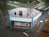 The station area is dominated by the overpassing viaduct, which carries the Kruithuisweg, a provincial highway, over the railroad. The viaduct is also used by pedestrians and travellers to reach the platforms at the other side.
