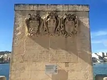 The plinth containing the coats of arms and inscription is listed on the National Inventory of the Cultural Property of the Maltese Islands.[3]