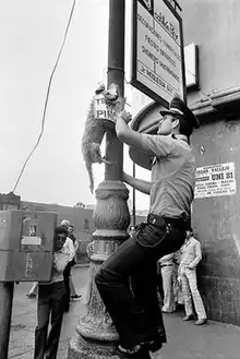 On the morning of December 26, 1980, several stray dogs were discovered by locals, hanging on lampposts located in important avenues of the city's central area. The dogs, hung by their necks, also had pieces of paper tied to them with phrases such as "Deng Xiaoping son of a bitch" (Spanish: Teng Siao Ping hijo de perra).[1][2]