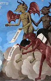 A fresco detail from the Rila Monastery, in which demons are depicted as having grotesque faces and bodies