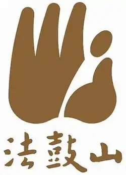 ![]() Dharma Drum Mountain logo: three mountain peaks and a meditating monk; combined, the logo forms a hand. | |