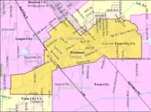 - ↑ "Geographic Identifiers: 2010 Demographic Profile Data (G001): Dickinson city, Texas". United States Census Bureau. Retrieved January 6, 2012.