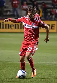 In February 2011, Chaves signed with Chicago Fire of Major League Soccer.[3] He made his debut, and scored his first goal for his new club, 19 March 2011 in Chicago's 1–1 tie with FC Dallas on the opening day of the 2011 MLS season.[4] Chaves went on to score in each of his next two matches, a 3–2 win vs. Sporting Kansas City 26 March 2011 and a 2–1 loss at Seattle Sounders F.C. 9 April 2011 to become the first player in club history to record goals in each of his first three league appearances for the team. Chaves would finish the 2011 campaign with seven goals and three assists across all competitions, helping the team to its first appearance in the Lamar Hunt U.S. Open Cup final since 2006 where they eventually fell 2–0 at Seattle.