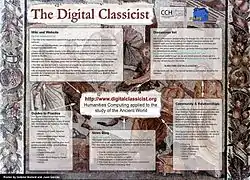 The Digital Classicist is a community of those interested in the application of digital humanities to the field of classics and to ancient world studies more generally. The project claims the twin aims of bringing together scholars and students with an interest in computing and the ancient world, and disseminating advice and experience to the classics discipline at large.[1] The Digital Classicist was founded in 2005 as a collaborative project based at King's College London and the University of Kentucky, with editors and advisors from the classics discipline at large.[2]