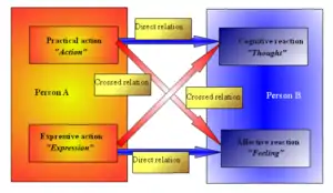 The work on subpersonalities[2] was integrated into a hypostatic model.[3] The model describes personality aspects and dimensions, as well as intra- and interpersonal relations. Not the person whole and alone, nor the relationship, but the relation between parts of person(s) is held as a central element that promotes both personal and social organization and disorganization. Personality is viewed as both an agency and a construction, along with its development and psychopathology, as the model is accompanied by specific methods of assessment and therapy, addressing each of the personality dimensions. The hypostatic relations of the human mind also imply the existence of a hypostatic model of consciousness, representing the contents of consciousness as an identity of various aspects, different only with respect to each other, but tending to coincide in a certain aspect of their consideration.[4]