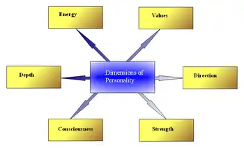 The term hypostasis can cover a wide range of personality-related entities usually known as type, stage, trait, system, approach.[1] The history of the concept can be traced back to Peirce's hypostatic abstraction, or personification of traits. Different authors have described various dimensions of the self (or selves), personality dimensions and subpersonalities.[2] Contemporary studies link different aspects of personality to specific biological, social, and environmental factors.