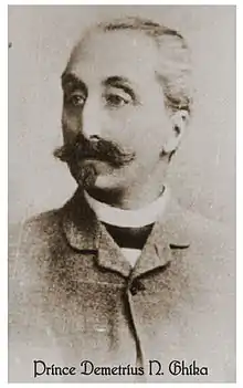 Dimitrie Ghica-Comănești (also Demeter Ghica, Ghica Comăneșteanu, Prince Ghica de Roumanie; 31 December 1839 – 1923) was a Romanian nobleman, explorer, famous hunter, adventurer and politician. He was born into the Ghica family, with nobiliary and ethnic Albanian ancestry roots beginning in the 17th century. He was the son of Ecaterina Plagino (1820–1881) and aga (Rom. archaic – Chief of Justice) Nicolae Ghica, boyar (b. 1798 in Iași, d. 1853 in Comănești), from whom he inherited the estate domains of Comănești and Palanca, two of the ten his father had. He graduated a law degree from the Humboldt University of Berlin, and pursued his career as prefect of Bacău County, magistrate, and member of the Chamber of Deputies of Romania between 1872 and 1892 and further as royal adviser.