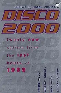 Disco 2000 is a 1998 anthology of short fiction edited by music journalist Sarah Champion. The stories in the collection are set in the last hours of 1999, and while the authors featured are largely known for their science fiction work, not every story is strictly of that genre. The collection is a follow-up to Champion's previous collection, Disco Biscuits, which took the British club scene as its topic.