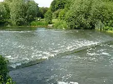Dobbs Weir is both a weir in Hoddesdon, Hertfordshire and an area of Roydon, Essex in England on the River Lea. It is well known for angling, outdoor beauty and watersports. It is overlooked by the Fish and Eels pub.[1]