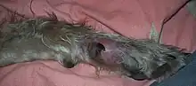 A dog's injured leg