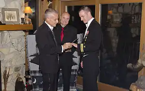 - ↑ Chris Johnson, (December 1, 2011). "'Pinning-on' ceremony 'big deal' for lesbian couple", Washington Blade: Retrieved January 28, 2012; Parrish, Karen (January 25, 2012). "Colonel 'Proud, Humbled' to Represent Gay, Lesbian Troops" Archived April 14, 2012, at the Wayback Machine, Department of Defense: Retrieved January 27, 2012