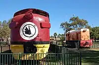 Three standard gauge locomotives are on display in the centre of the museum. Each of them previously operated on one or both of the mining railways that terminate at Port Hedland (the Goldsworthy railway and the Mount Newman railway).