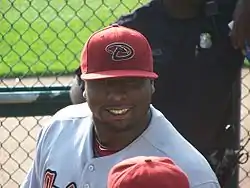 Dontrelle Wayne Willis (born January 12, 1982), nicknamed "the D-Train",[1] is an American former professional baseball pitcher. A left-hander, he played in Major League Baseball for the Florida Marlins, Detroit Tigers, Arizona Diamondbacks, and Cincinnati Reds. Willis was notable for his success during his first few years in the major leagues and for his unconventional pitching style, which included a high leg kick and exaggerated twisting away from the batter.[2] He was named the 2003 National League Rookie of the Year.