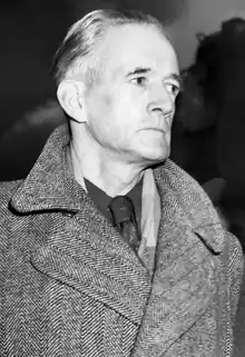 Chandler was found guilty of all ten counts of treason on June 28, 1947.[14][15][6][3] He was fined $10,000 and sentenced to life imprisonment by Federal Judge Francis Ford.[16] On being convicted for treason, Chandler also automatically lost his U.S. citizenship.[17] According to a contemporary newspaper, "Death by hanging had been demanded by Special Government Prosecutor Oscar R. Ewing who characterized the tall and gray-haired defendant as a black-hearted traitor who 'gave his heart and soul to Hitler' because he wanted Germany to win the war."[16] Chandler's subsequent appeal was denied.[18][19]
