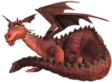 Dragon is a fictional character from the Shrek franchise, who is initially believed to be a fearsome villain guarding Princess Fiona. In a twist, she is revealed to be female and in search of love. While she is abandoned during Shrek's escape, she later becomes his ally and the wife of his sidekick, Donkey, helping defeat the evil Lord Farquaad by eating him whole. She has since appeared in every series film in some regard, with a parallel universe version becoming a villain in Shrek Forever After. Also appearing in spin-offs, she is commonly seen as a puppet in stage adaptations of the series such as Shrek the Musical.