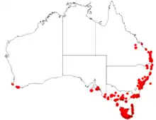 D. binata occurs naturally in Australia, primarily in coastal areas from Fraser Island in Queensland, southwards down through New South Wales and Victoria to Tasmania and the south-east corner of South Australia. The range of this species extends to New Zealand where it is common below an elevation of 1000 metres, being found in both the North and South Islands, Stewart Island/Rakiura and farther afield on the Chathams.[3] Some populations go dormant in the winter, while others are truly tropical.