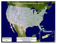 Area of influence map of the Jalisco New Generation Cartel in the United States. - Puerto Rican mafia