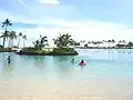 As the lagoon aged, it became murky, stagnant and undesirable for swimming. In 2006 the lagoon underwent renovations for approximately $15 million.[1] With introduction of a new water circulation system, smaller size and shallower waters, the pond became a desirable swimming spot for many. The renovations also incorporated a small island, palm trees, and a boardwalk. On October 16, 2007, the lagoon was officially re-opened with a ceremony attended by Hawaii Lieutenant Governor Duke Aiona and relatives of Duke Kahanamoku.