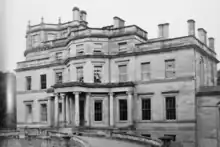 Francis James Usher bought the house and gardens from Sir John Richard Hall in 1918 or 1919, and the wider estate remains in the Usher family ownership.[43] In 1920 Usher employed Ernest Auldjo Jamieson to modernise the house (and add electricity). New furniture was commissioned from Whytock & Reid in Edinburgh. The First world War caused huge problems in terms of loss of the vast staff required (not just through death but through reluctance to return to such poor wages) and despite its recent modernisation the house fell into rapid decline. The house was photographed by Country Life magazine in 1925, creating a record of its grandeur in use as a house. It was requisitioned for use as a school during the Second World War and had a fire in 1947. It was destroyed by a controlled explosion in 1958. A smaller house was built on the site.[44]