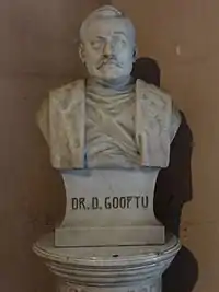 Dr. D Gooptu was the son of Brindaban Chandra Gupta who had considerable landed property in and around Calcutta.[4] Dr. D Gooptu was one of the favourite students of David Hare[2] and educated under his care at the Hare School in Calcutta. Mahashri Debendranath Tagore was his contemporary at the school.[1] When the Medical College of Bengal was established in June 1835, he was admitted as one of the first four foundation students. He assisted Madhusudan Gupta in carrying out the first human dissection in modern India and Asia.[5] Having passed his final examination on 2 February 1839 he was appointed by the Honourable East India Company as medical officer in one of the north-western towns but as he was inclined towards independent practice, he refused the post. Prince Dwarkanath Tagore had a dispensary of traditional Ayurvedic medicine at 13, Esplanade Road and entrusted Dr Gooptu to practice from there. He soon became family physician to Prince Dwarka Nath Tagore[6] who introduced him to other well-to-do families in Calcutta, and thus at the age of twenty-two he began his career as a medical practitioner, becoming the family physician to all the Tagore households.[2][7]