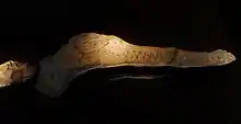 The dyrosaurids were a group of mostly marine, long jawed, crocodile-like quadrupeds up to 6 metres (20 ft) long.[1] The largest dyrosaurid was probably Phosphatosaurus estimated at 9 m (30 ft) in length.[2][3] Based on bone tissue evidence, it has been hypothesized that they were slow-growing[4] near-shore marine animals with interlocking closed jaws,[4] able to swim as well as walk on land. External nostrils at the posterior end of its snout and an internal naris in its pterygoid indicated a habit of hunting while swimming with the top of the head above the water, enabling it to breathe while stalking prey.[1]