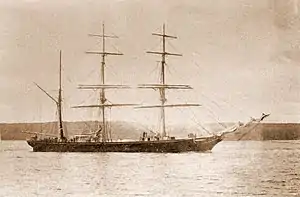 Earlshall (73405) was an iron hulled Barque registered in St. John's, Dominion of Newfoundland. It ran aground and wrecked on January 24, 1915 with no loss of life in Leeward Cove, 1.5 miles south of Motion Head, Petty Harbour-Maddox Cove, Newfoundland.[1][2]