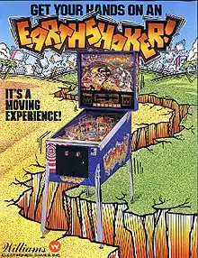 Earthshaker! is a pinball game designed by Pat Lawlor and released by Williams Electronics in 1989. The game features an earthquake theme and was advertised with the slogan "It's a Moving Experience!" Some prototypes have a building that when the shaker motor is activated will fall down but the team removed it due to cost savings.[1]
