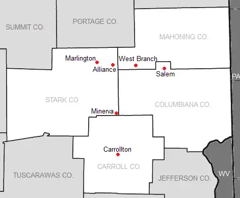 - ↑ ""Eastern Buckeye Conference to go with 7 schools for now"". Alliance Review. 2017-06-06. Retrieved 2018-08-19.